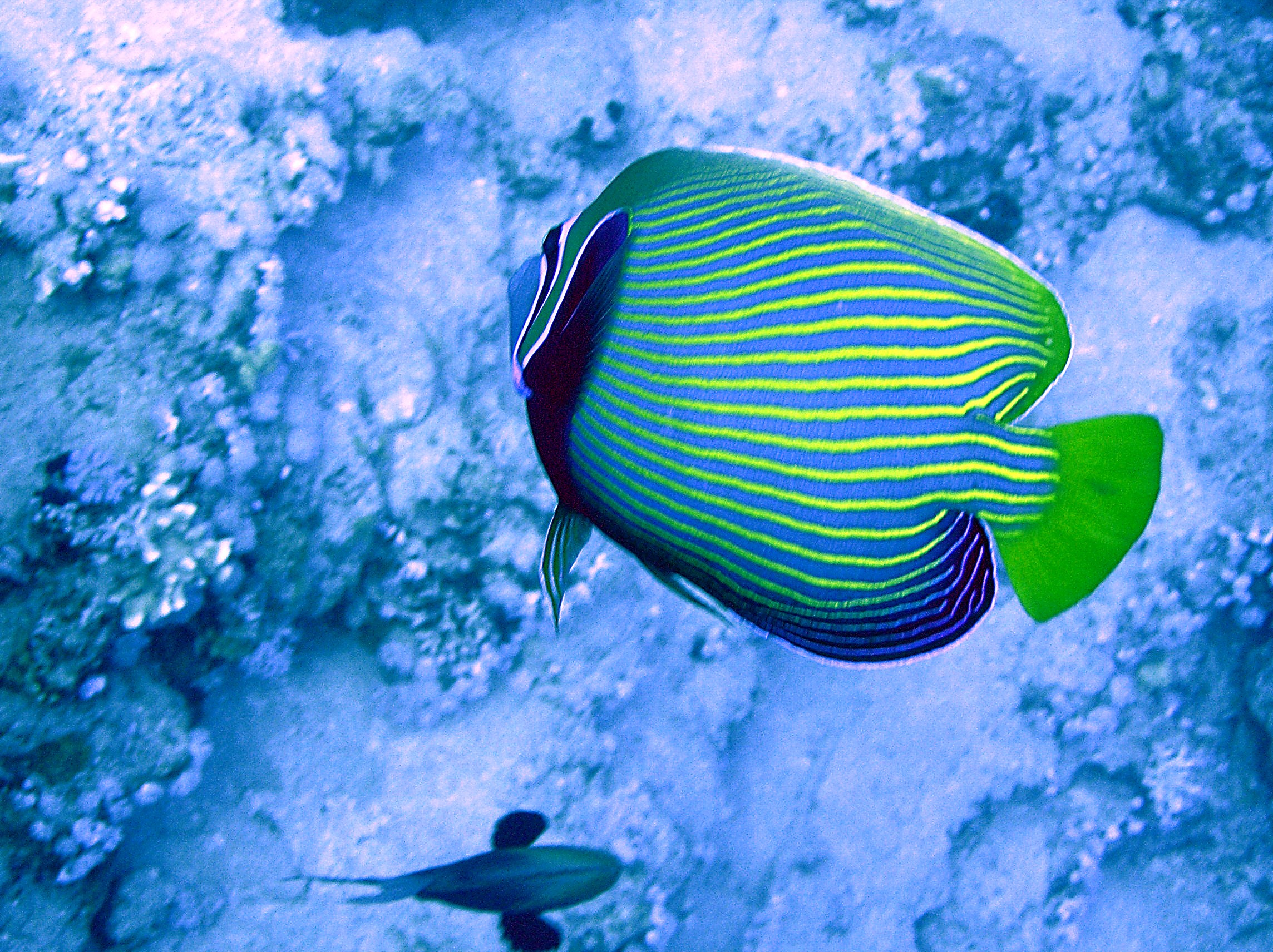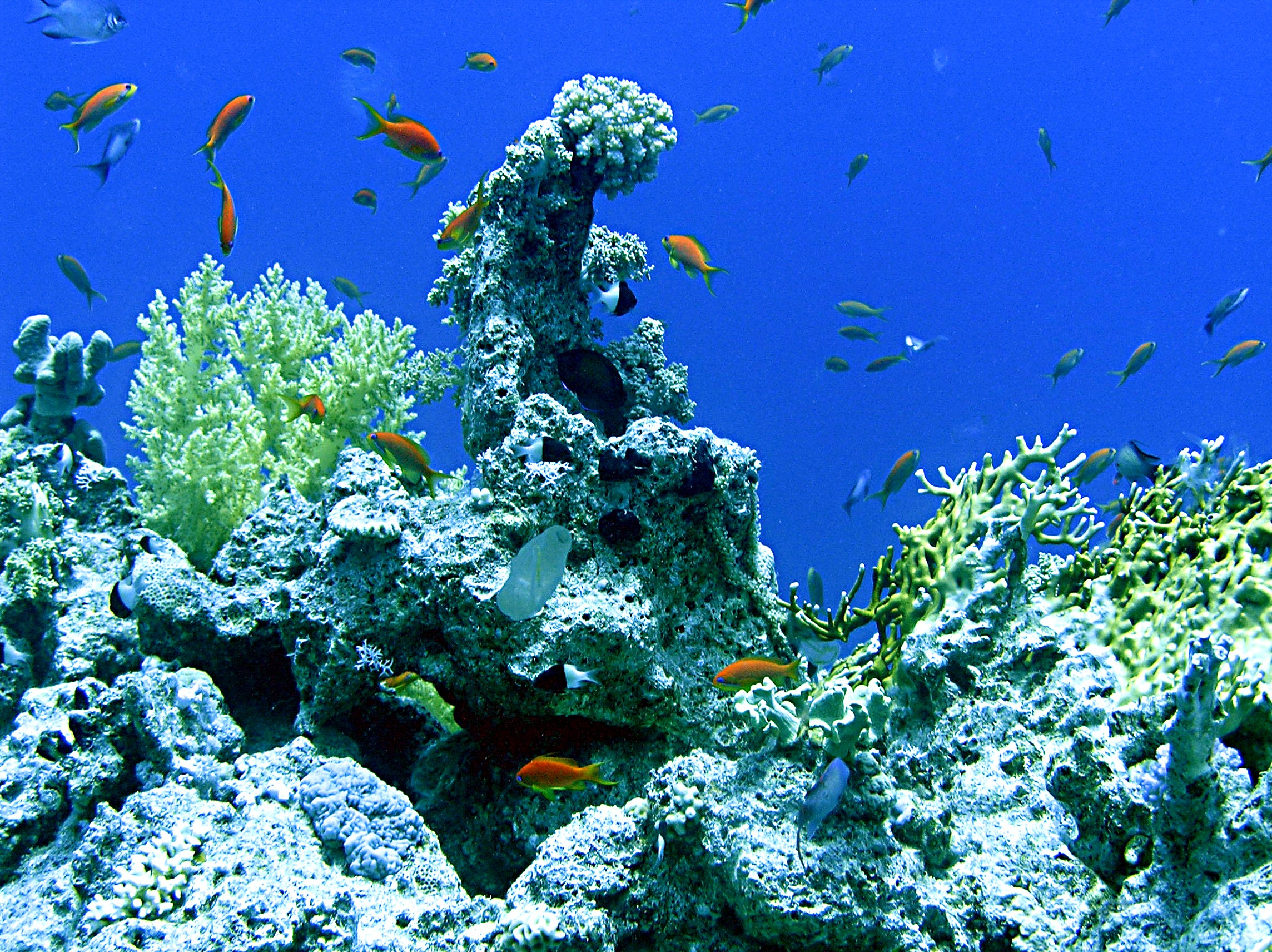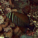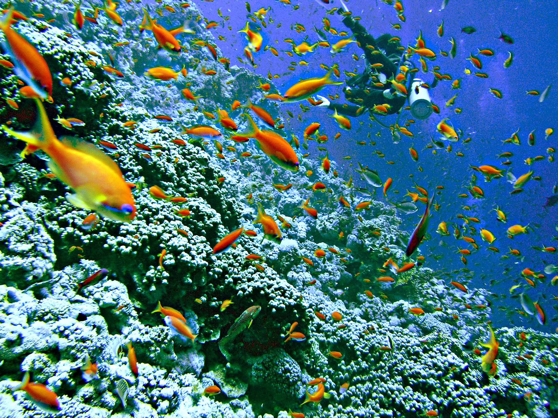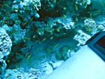 a moray, clownfish in an anemone, innumerable different sorts of angelfish, butterflyfish, surgeonfish, triggerfish, goatfish and wrasse, and