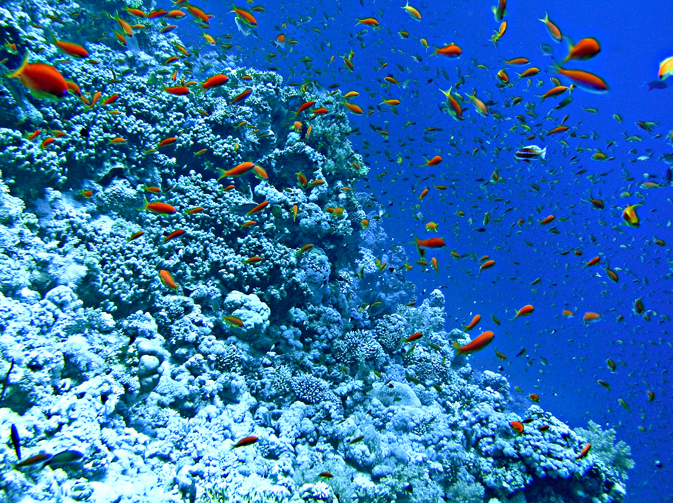The floating jetty runs out to a reef wall which drops abruptly from near the surface to a depth of over 20 metres.