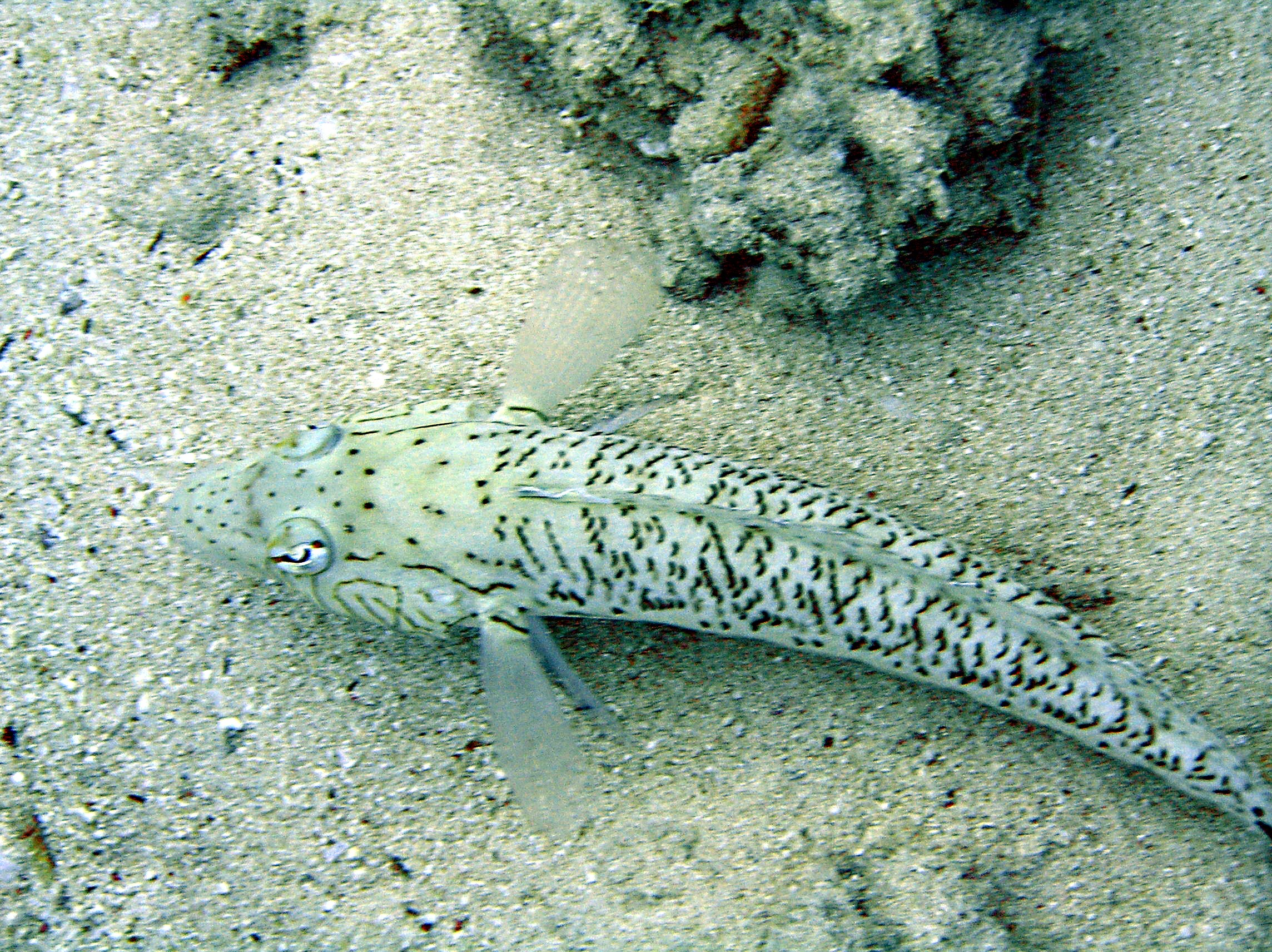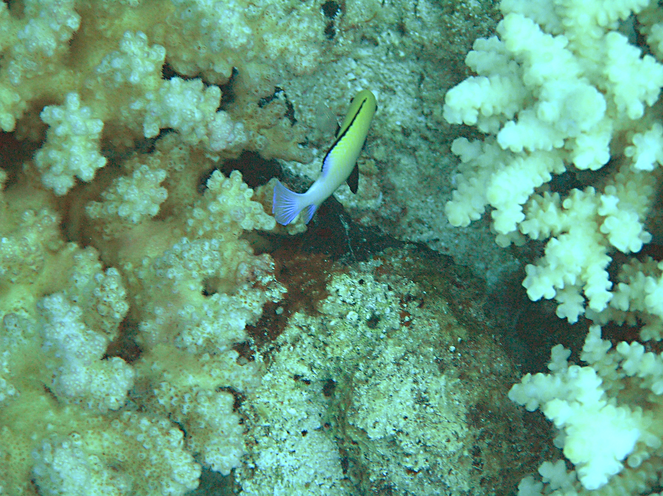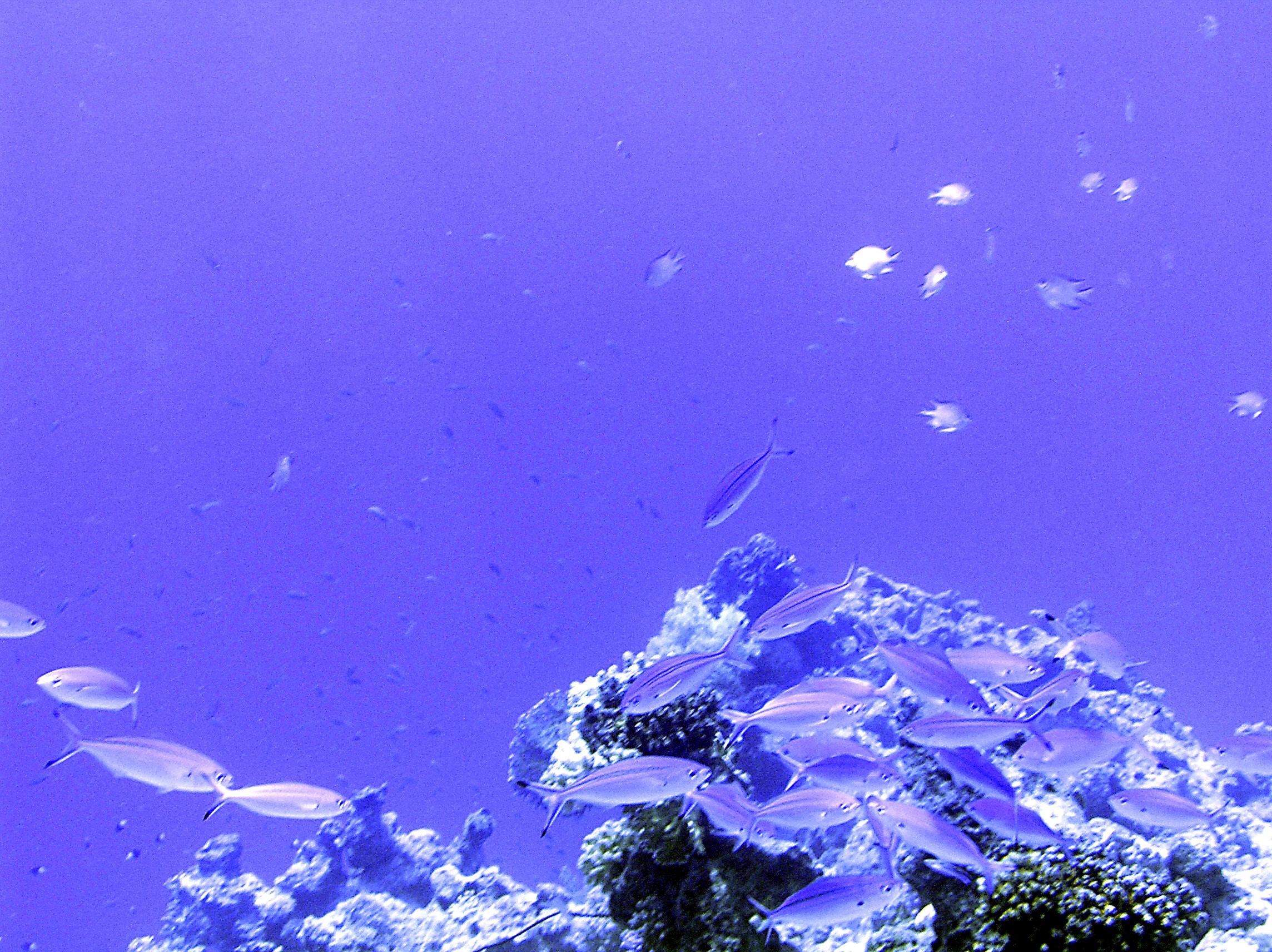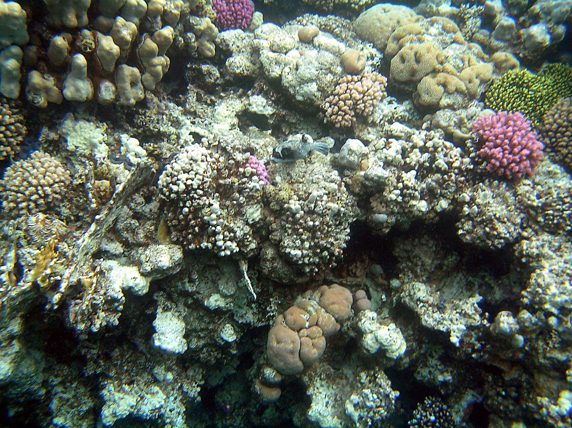 The beach is about 50 metres from the hotel and less than 20 metres offshore is a small reef. The coral is lousy (kicked to shreds by a LOT of people)