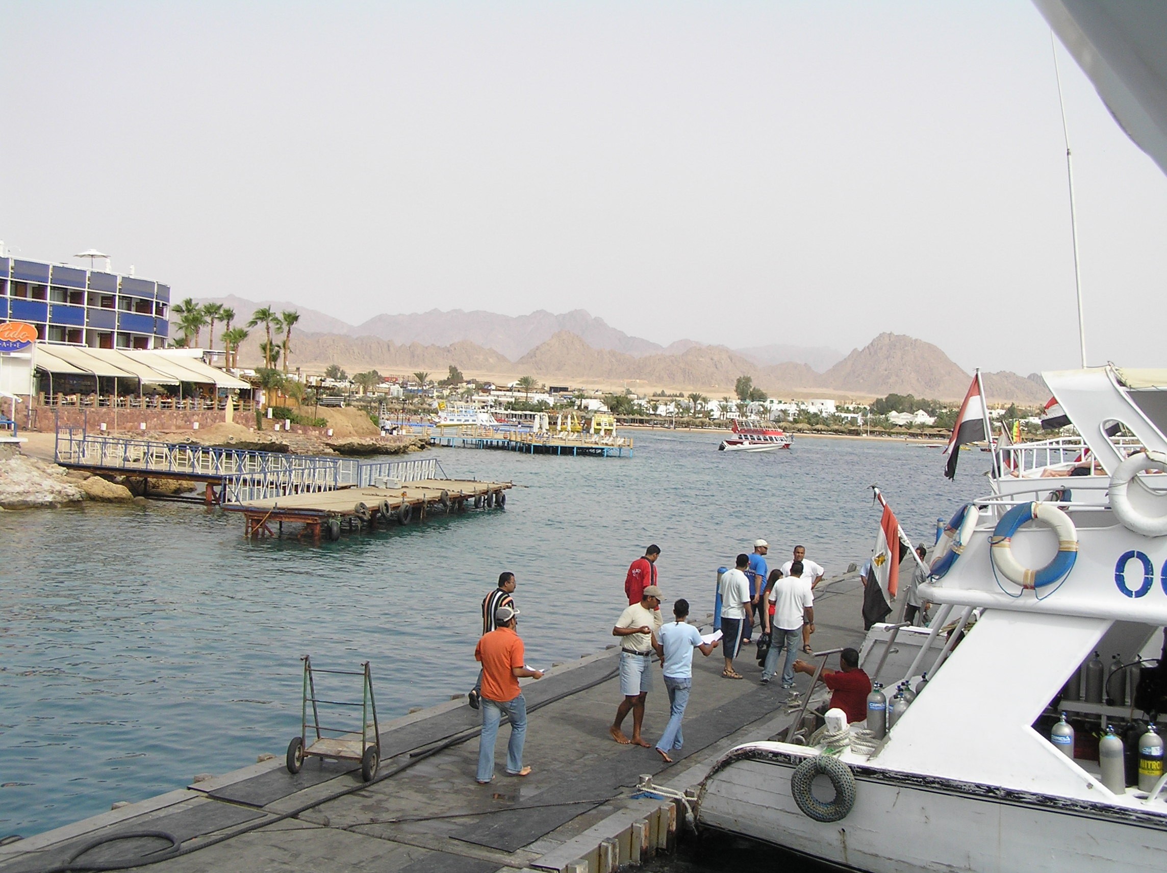 Camel operate their own dive boats, which load at the Naama Bay Dive Boat Jetty. Camel has a lot of divers each day (they don't all stay at the Camel Hotel)